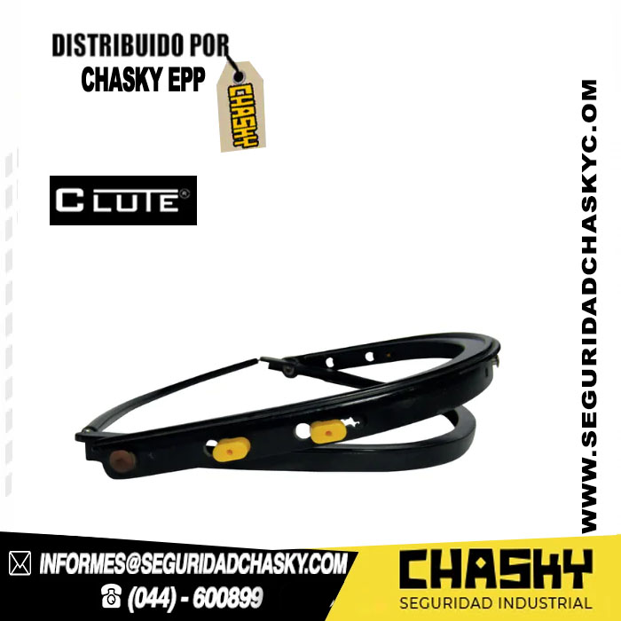 Adaptador universal marca CLUTE sirve como soporte para montar la pantalla facial a cualquier casco de seguridad estándar.