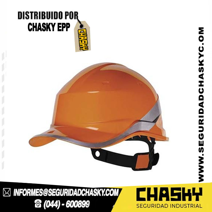 Casco de obra ABS. Forma innovadora de gorra de baseball que proporciona una mayor visión vertical. Sometido a tests con visera llevada hacia delante o hacia atrás, para menos estorbo. Arnés interior de poliamida : 3 bandas textiles con 8 puntos de fijación. Sudadera de esponja. Sistema innovador de presión con botón “color to color”. Ajustable desde los 53 a los 63 cm de contorno de la cabeza. 2 posiciones posibles de contorno (alto/bajo) para un mejor confort. Aislamiento eléctrico hasta 1000 VAC o 1500 VCC.