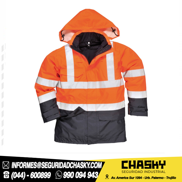 Parka multi-protección impermeable y transpirable, que ofrece protección contra múltiples riesgos. El forro ignífugo, de tejido polar, desmontable hace que la prenda pueda ser usada en cualquier condición climatológica. Debe ser usada con pantalones para obtener una completa protección.