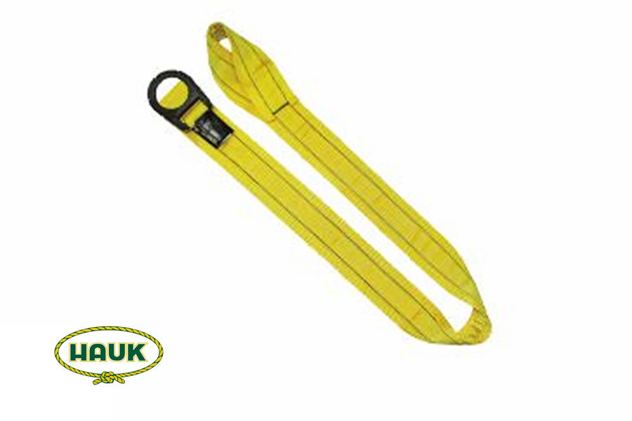 Conector de anclaje 1.5mts x 1 anilla / Accesorios dielectricos / 1 anilla pequeña + ojo de faja / Capacidad de ruptura de anilla: 5,000Lbs / Con cinta de polyester de alta tenacidad, ancho: 45mm, resistencia: 5000Lbs / Conocido tambien como eslinga de anclaje o estrobo de anclaje / Longitud: 1.5mts / Incluye certificado y 1 año de garantia
