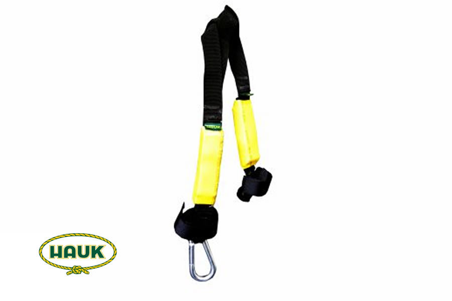 Linea antitrauma diseñada exclusivamente para aliviar los efectos negativos del trauma por suspension, posterior a la caida del trabajador / 1 mosqueton pequeño + 2 amortiguadores / Con cinta de polyester de alta tenacidad, carga maxima de trabajo: 200kg / Longitud: regulable / Peso maximo del usuario: 140kg