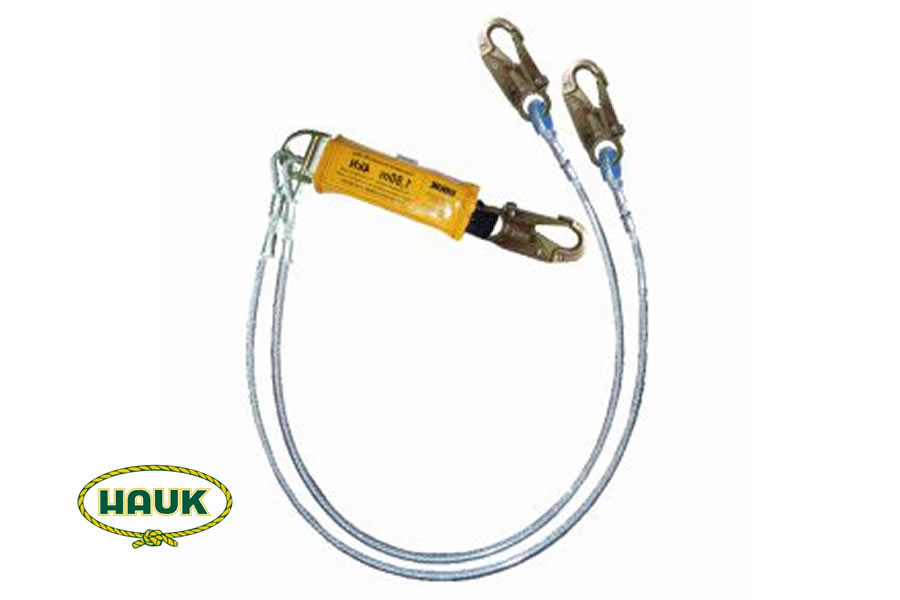 Linea de Vida Cable de Acero con amortiguador / 1 gancho pequeño de 3/4″ + 2 ganchos pequeños de 2 1/4” / Capacidad de ruptura de ganchos: 5,000Lbs / Con cable de acero de 1/4” resistencia a la ruptura: 5000Lbs / Conocido tambien como linea doble, linea tipo “Y” o linea de doble cola / Longitud: 1.80mts / Incluye certificado y 1 año de garantia