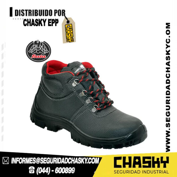 Botín de seguridad, fabricado en cuero, entresuela de Poliuretano de baja densidad ultraliviana y planta de poliuretano de alta densidad, de excelente resistencia a los hidrocarburos y sus derivados. Aislante eléctrico según norma ASTM 2413-11